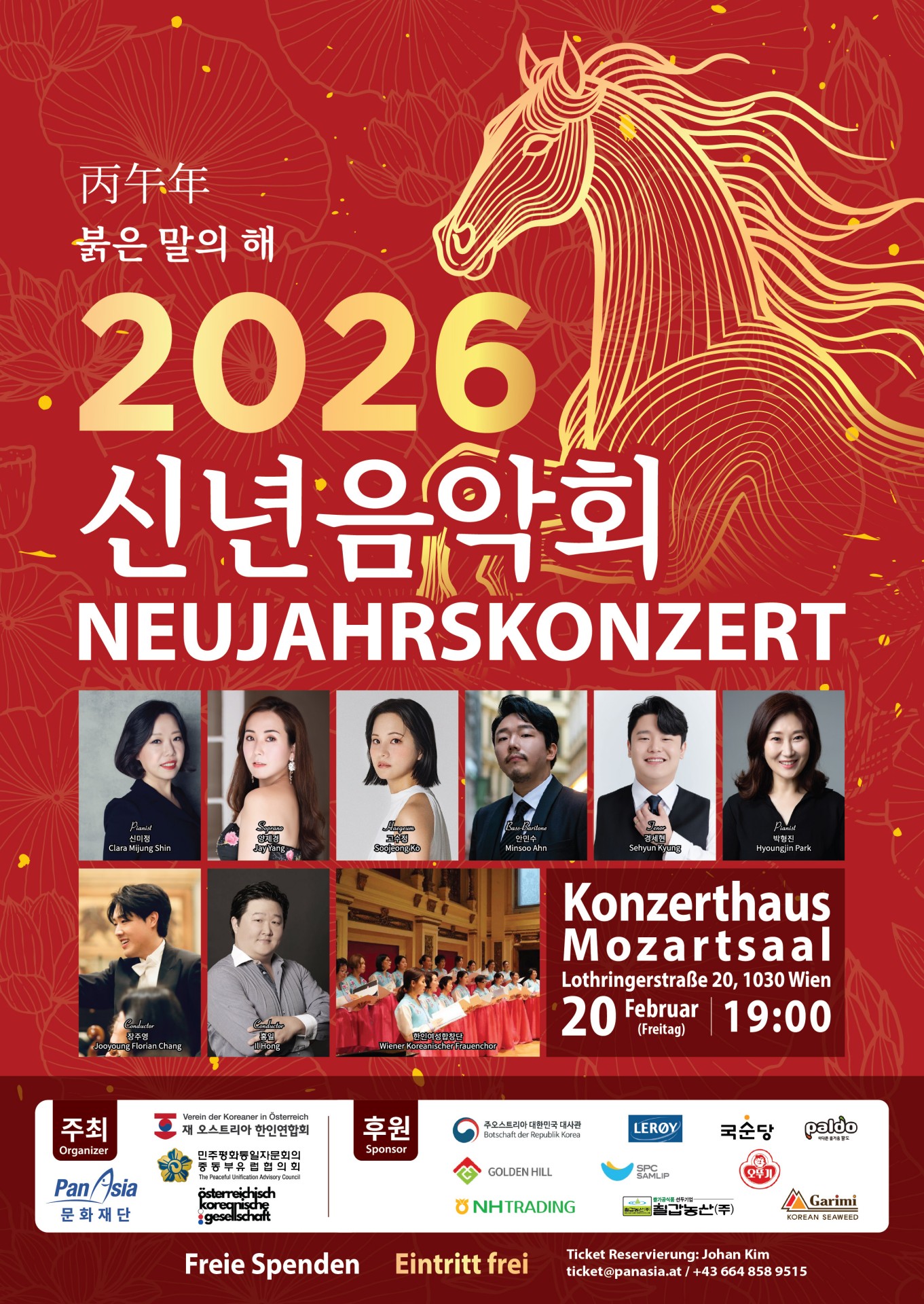판아시아 그룹 산하 판아시아 문화재단이 주최하는 ‘2026 신년음악회’가 오는 2월 20일 오후 7시 비엔나 콘체르트하우스 모차르트홀(Konzerthaus Mozartsaal)에서 개최된다. 이번 공연은 오스트리아 한인연합회, 민주평화통일자문회의 중동부유럽협의회, 한오친선협회가 협력 기관으로 참여한다.